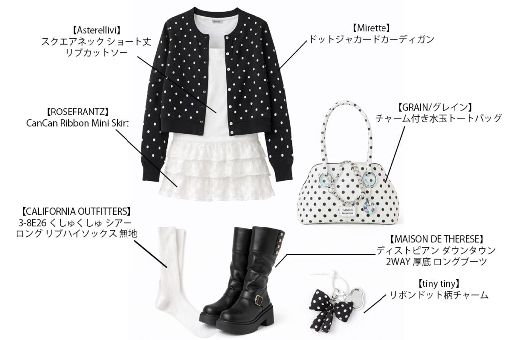 ドットって可愛いけどなんだかコーデに取り入れるの難しいですよね。。