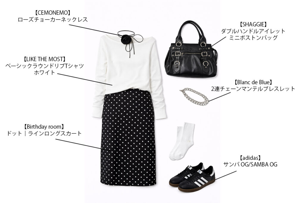 シンプルなロンT×ドットスカートで頑張りすぎないのにちゃんと可愛い!