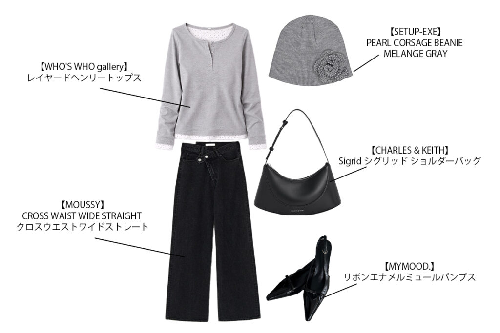 帽子:【SETUP-EXE】PEARL CORSAGE BEANIE / MELANGE GRAY